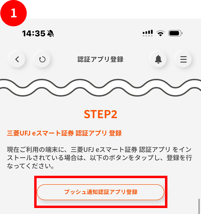 - 「三菱UFJ eスマート証券 認証アプリ」欄下部にある「登録する」ボタンをタップします