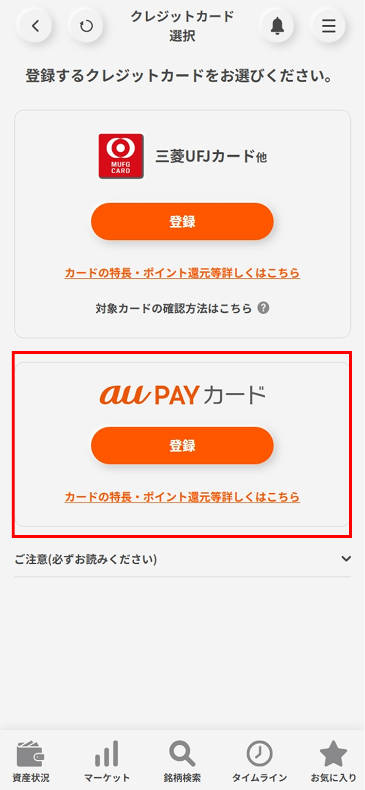 三菱UFJ eスマート証券ではau ID/au PAY カードを登録いただくと、各種割引サービスやプログラム、ポイント投資をご利用いただけます。