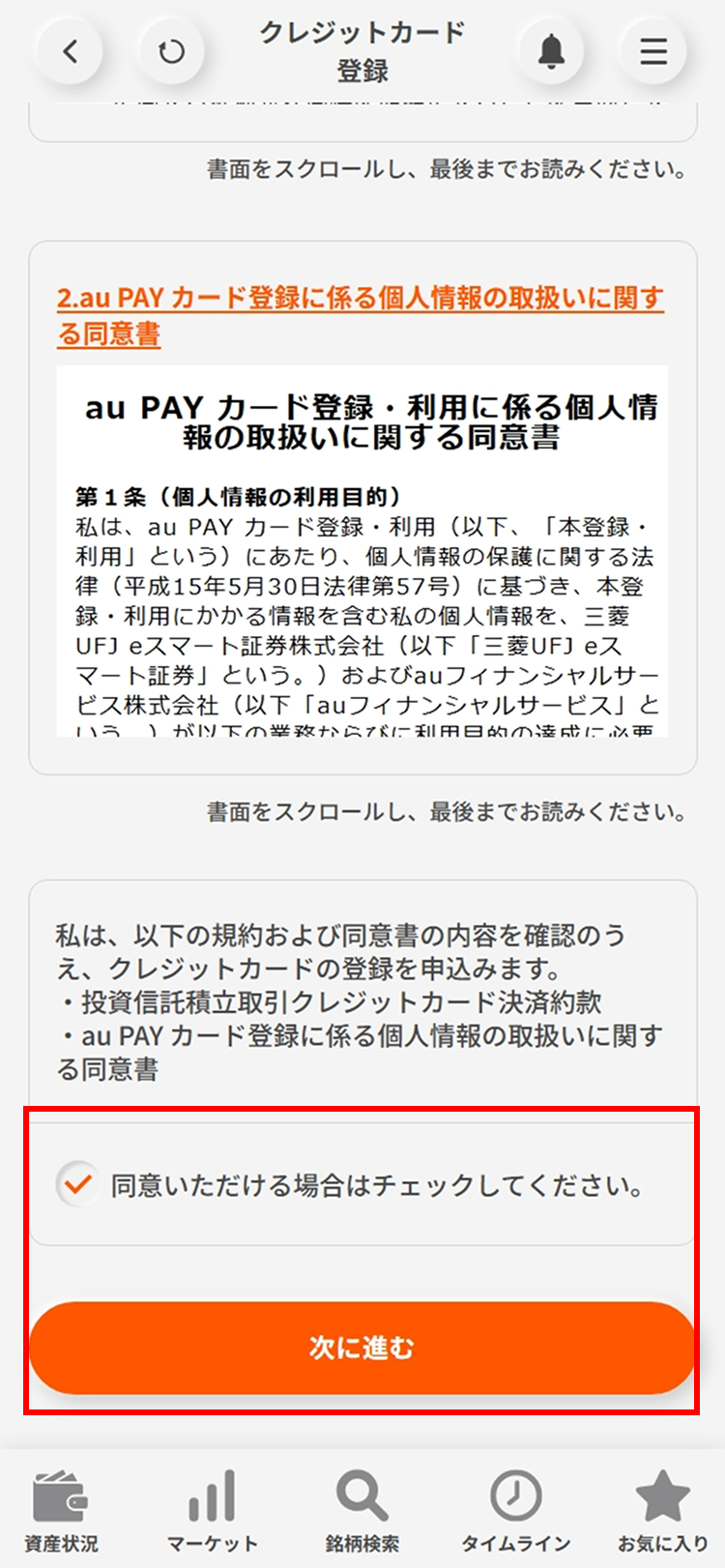 ※証券口座へのau ID登録が未済の場合はau ID登録の画面に遷移します。画面に従ってau ID登録をお願いします。