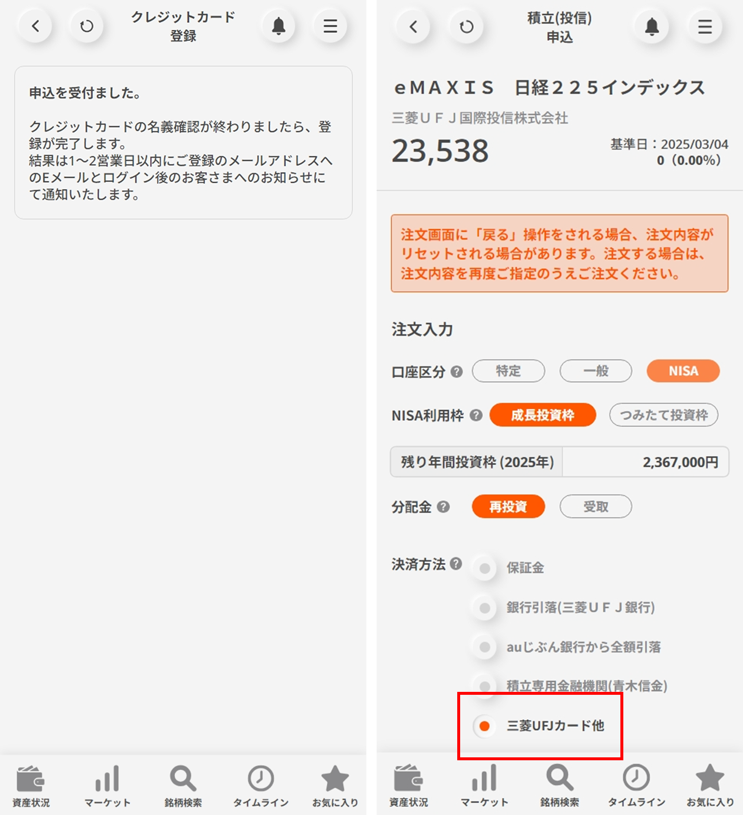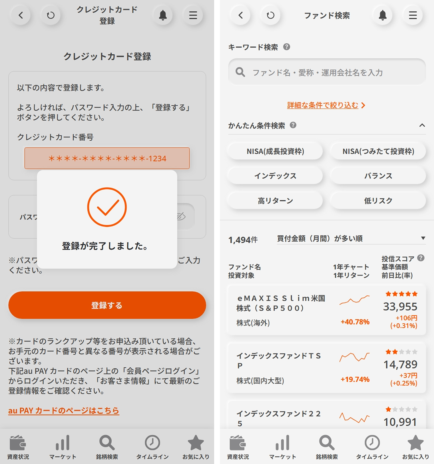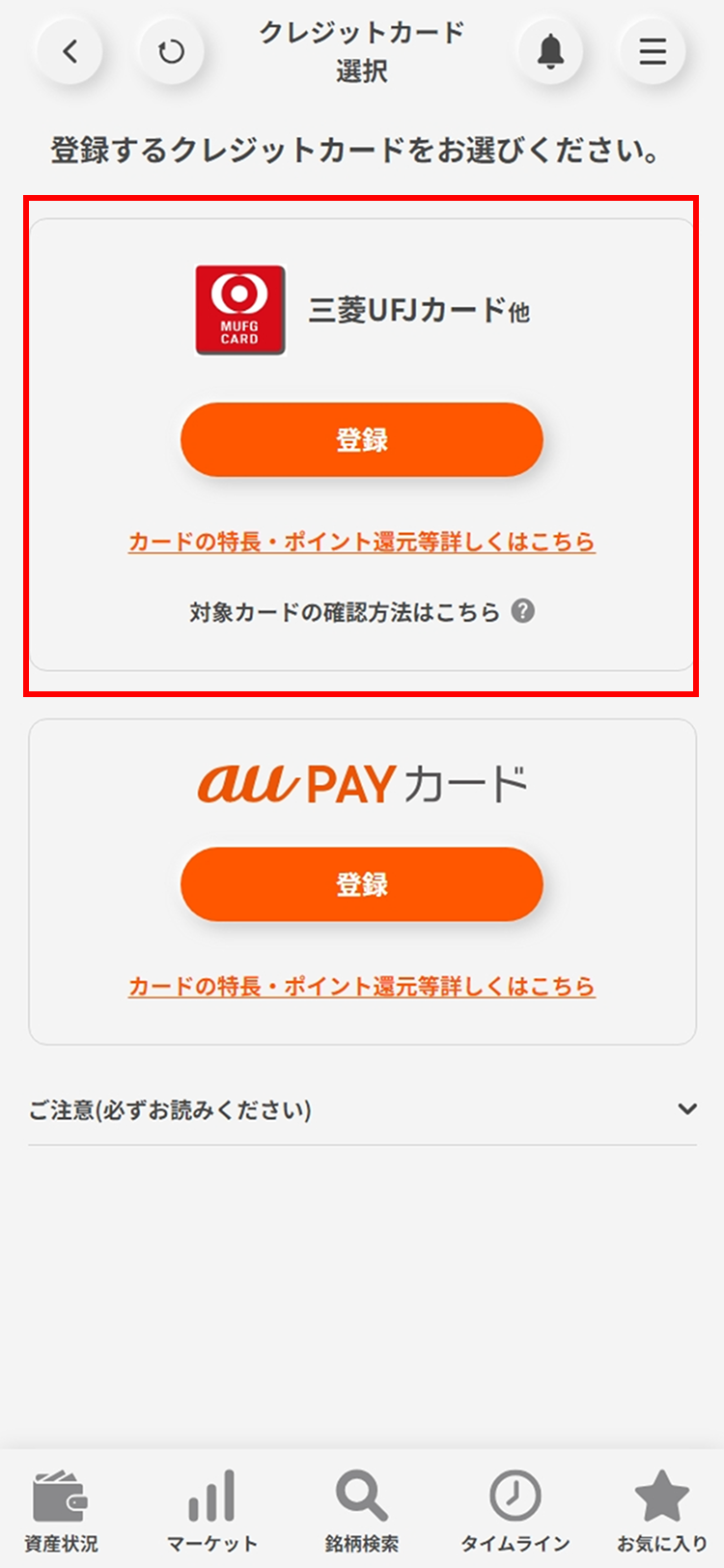 登録まで1~2営業日要します。あらかじめご了承ください。登録後は、投資信託の積立の決済選択時にクレジットカード決済をお選びいただけます。