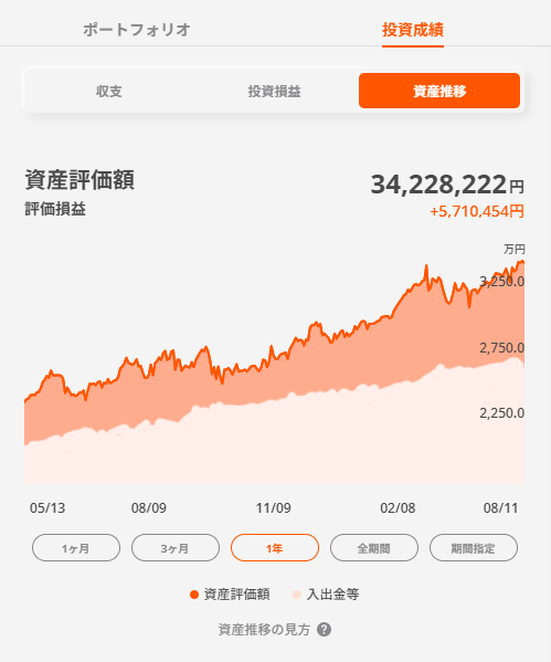 資産状況画面(ポートフォリオ、収支、投資損益、資産推移)とその他画面(残高照会、入出金確認画面等)では計算方法が異なるため、数円の相違が発生する可能性がございます。税額計算にご利用いただくことはできませんので予めご了承ください。