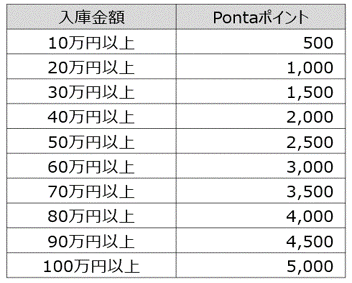 適用条件をすべて満たしたお客さま全員に、対象期間中の投資信託入庫金額に応じてPontaポイントをプレゼント!