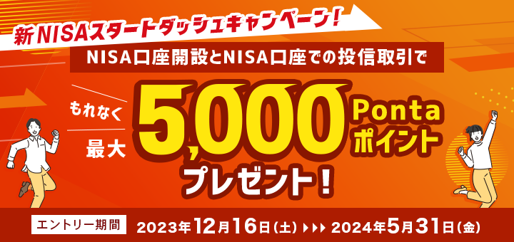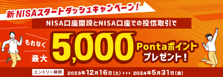 新NISAスタートダッシュキャンペーン! NISA口座開設と投信取引で最大5,000Pontaポイントプレゼント!