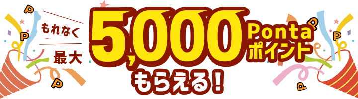 | 特典内容 | 最大で5,000Pontaポイントプレゼント |