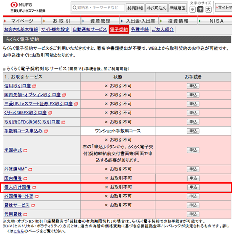 ① ログイン > 設定・申込 > 電子契約 > らくらく電子契約対応サービス >個人向け国債