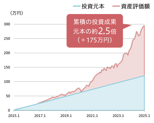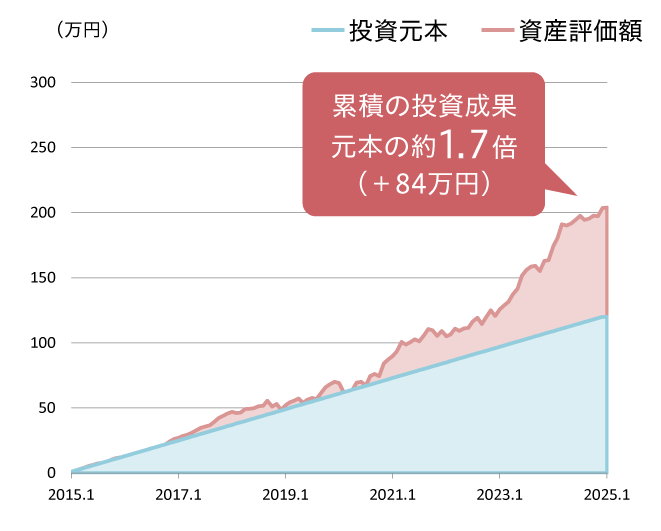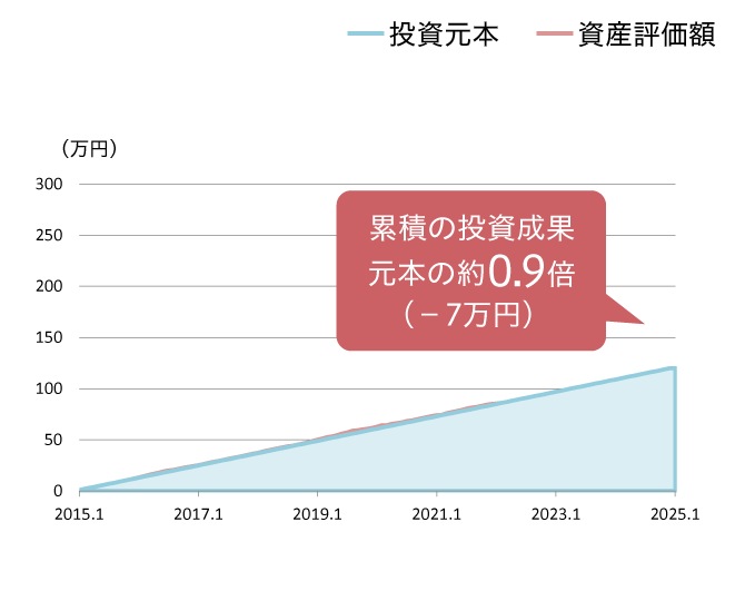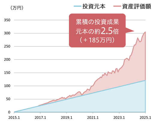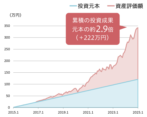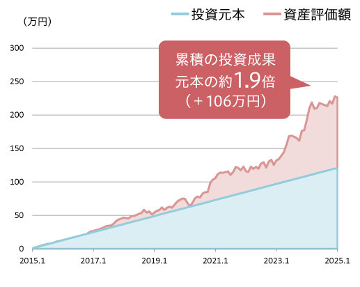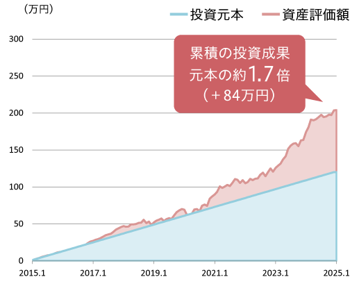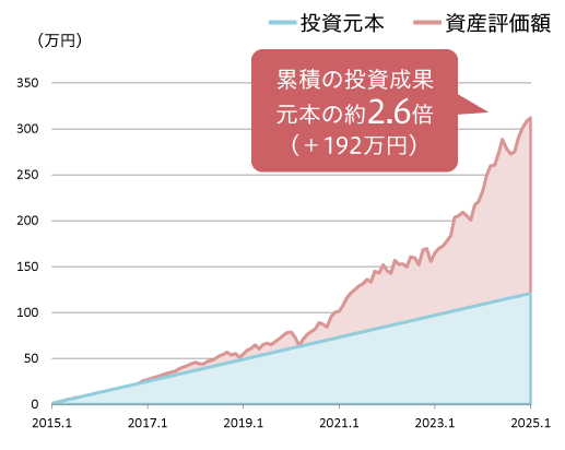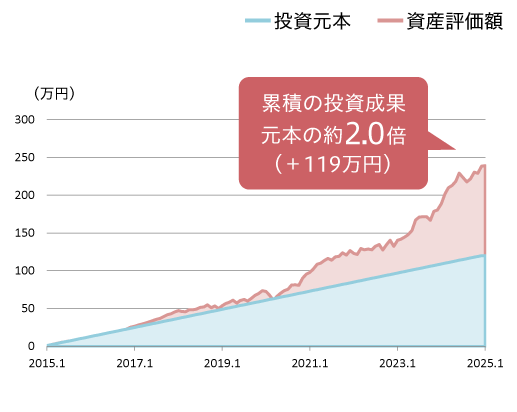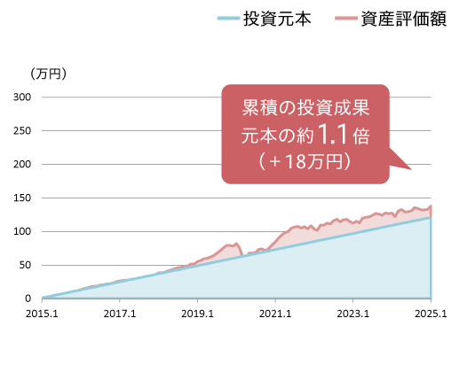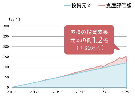連動対象のインデックスに10年間毎月末1万円(計120万円)のつみたて投資をすると