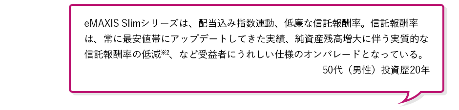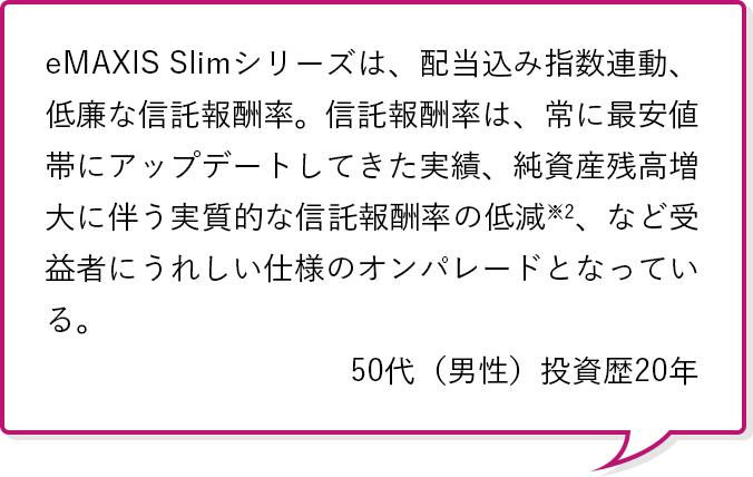 eMAXIS slimでは業界最低水準の運用コストを目指しますが、その達成を保証等するものではありません。