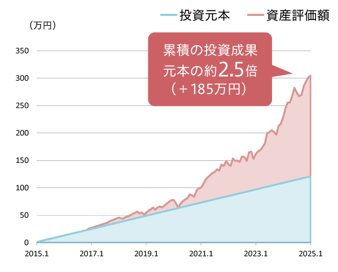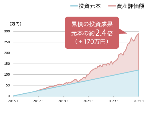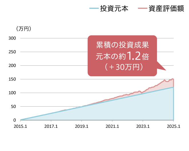 - ※上図はシミュレーションであり、将来の投資成果を示唆・保証するものではありません。また、当ファンドの運用実績ではありません。