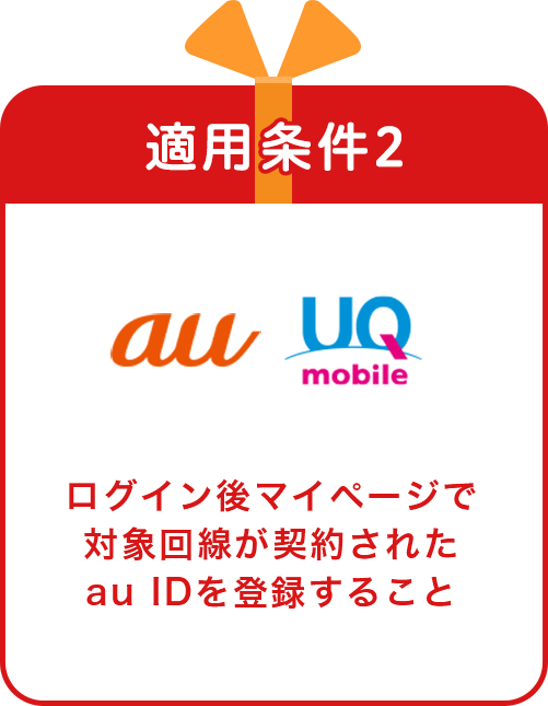 適用条件を満たしたauまたはUQ mobileのお客さま