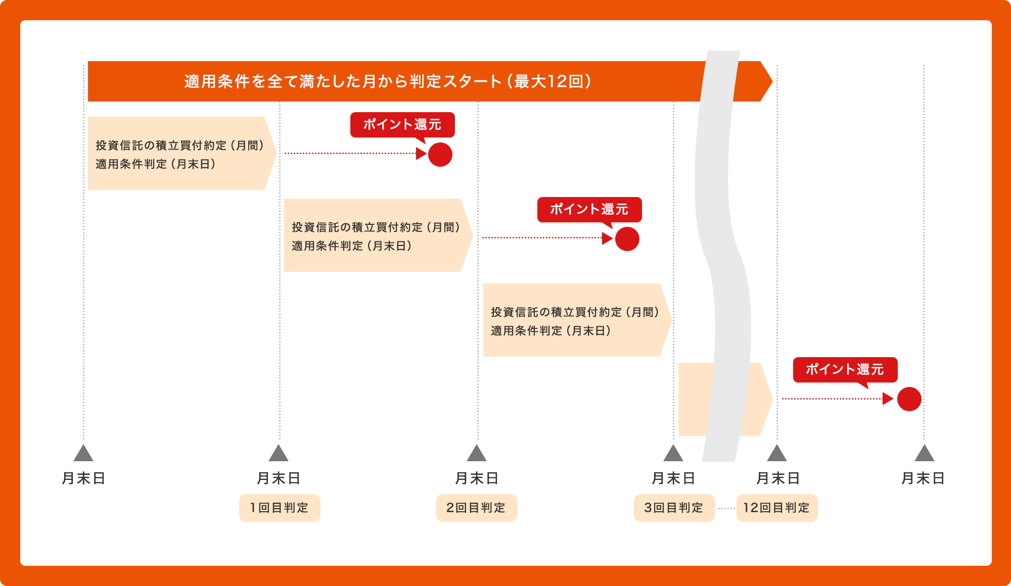※初回判定期間までに全ての条件を満たした月から12ヵ月間判定を行います。