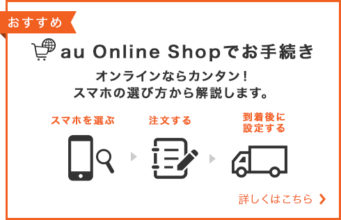 インターネットでお手続きする「au Online Shop」と、店舗でお手続きする方法があります。他社からのMNPなどご契約に関するお手続きの流れや詳細は、KDDI株式会社の ご案内ページをご確認のうえ、お手続きください。