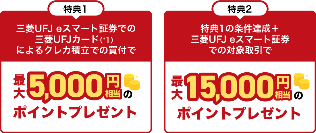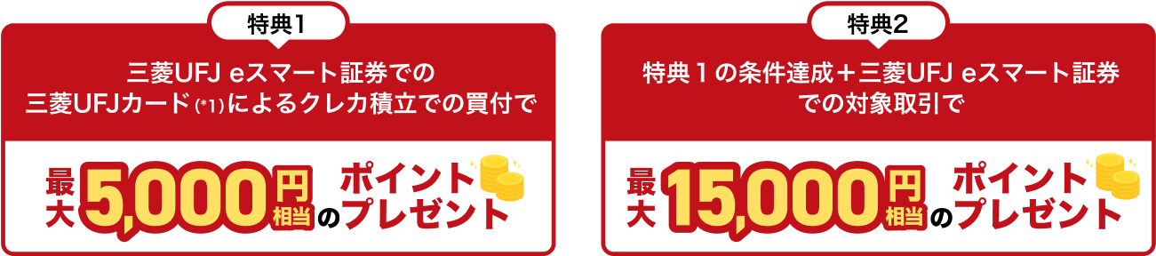 - auマネ活クレカ積立特典は、毎月の投資信託の積立金額5万円までが上限となります。