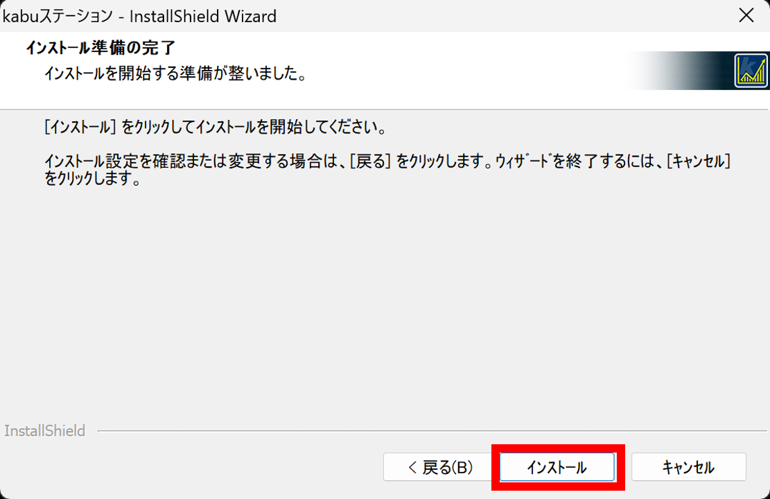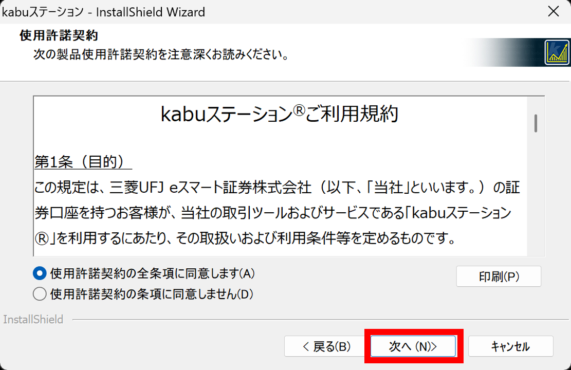 「kabuStation_Installer」のファイルをダブルクリックすると、インストール画面が立ち上がります。
