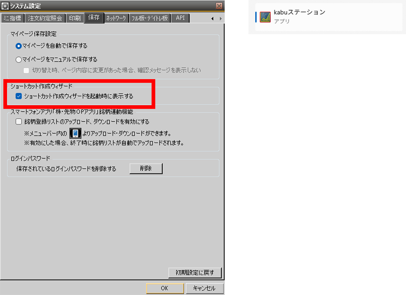 選択後、kabuステーション®が起動してログイン画面が表示されます。次回以降は作成したデスクトップのショートカットから起動ください。