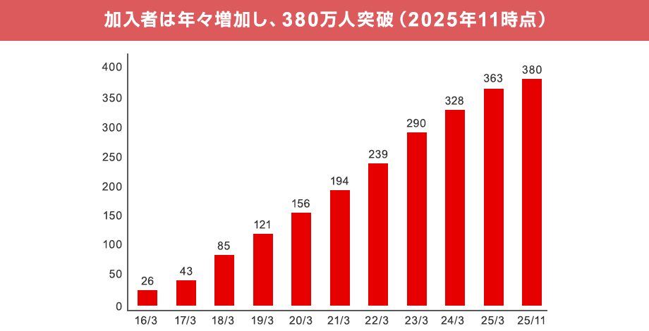 iDeCoは、掛け金が全額所得控除、運用益も非課税、給付を受け取る際にも税制優遇措置があるほか、転職・退職しても継続して加入できるなどのメリットがあり、より豊かな老後生活に向けた資産形成が可能になる制度です。「資産運用立国」構想や、家計金融資産の形成促進策により、自助努力型年金制度の重要性は今後一層高まることが予想され、加入手続きの簡素化も進む中、加入者は年々増加傾向にあります。さらに2027年1月には、加入対象の拡大や掛金上限の引き上げなど、iDeCo制度の利便性向上が予定されており、資産形成への関心が一層高まることが見込まれています。