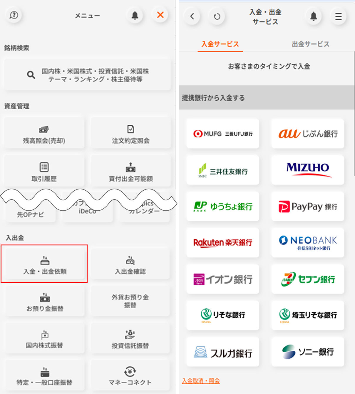 資金を入金する