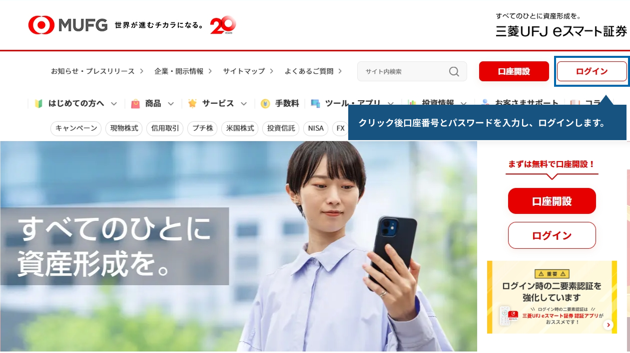 証券口座開設はこちら三菱UFJ eスマート証券の口座をお持ちの方