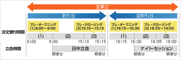 - ※(1)プレ・オープニングの板寄せのための注文受付時間
