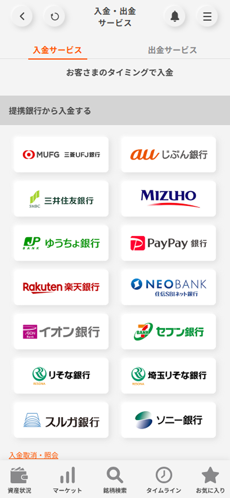先物・オプションのお取引を開始するには、取引に必要な資金を証券口座へ入金後、先物・オプション取引口座へ資金を振り替える資金振替(「振替依頼」)を行っていただきます。資金振替は一部時間帯を除きリアルタイムで受付けております。