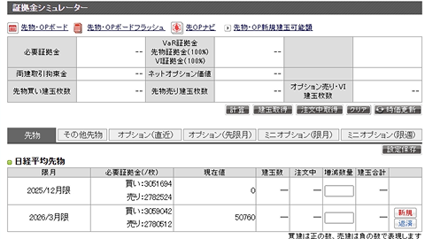 先物評価損益をリアルタイムの時価で計算します。通常、日中セッションの引け後に公表される清算値にて評価していますが、これをリアルタイムの時価で計算することにより、現時点の証拠金余力が一目でご確認いただけます。