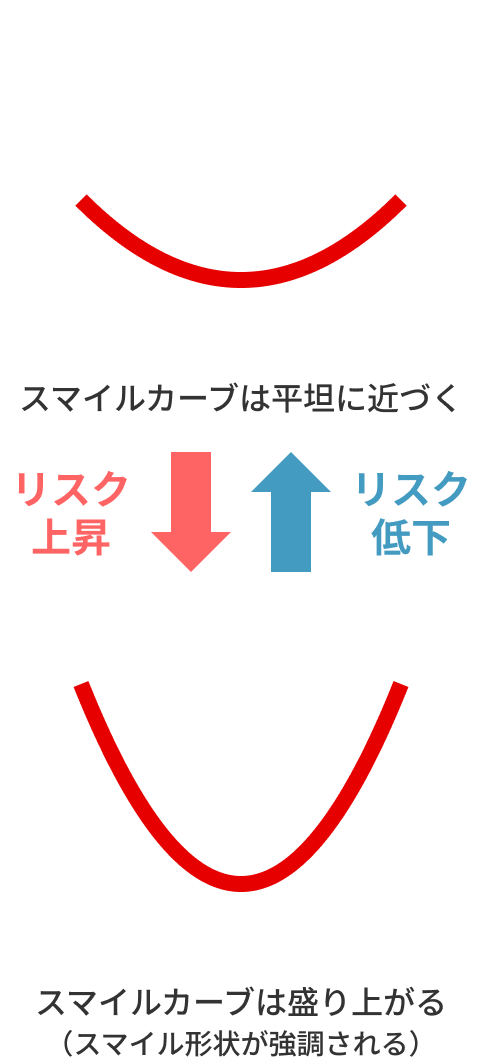 スマイルカーブに急激な変化が見られた場合、市場の不安定化やボラティリティの急上昇を示唆する可能性があります。このような局面では、先物やオプションを活用したヘッジ取引などを講じるタイミングと捉えることができます。