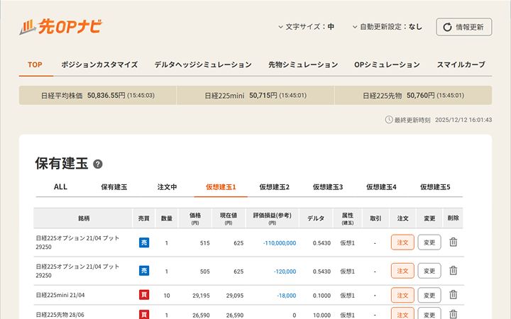 ストリーミング機能で先物・OP価格、主要指数をリアルタイムに自動更新。