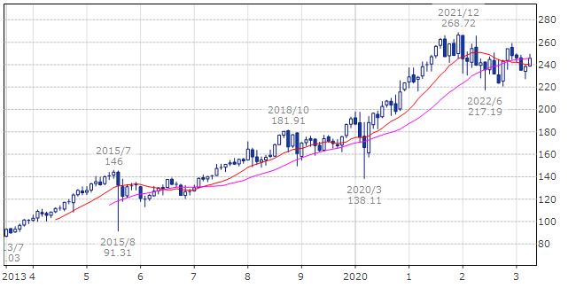 500社分の株を購入するにはそれなりのまとまった資金が必要ですが、ETFであれば少額の資金で投資することができます。