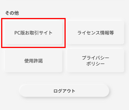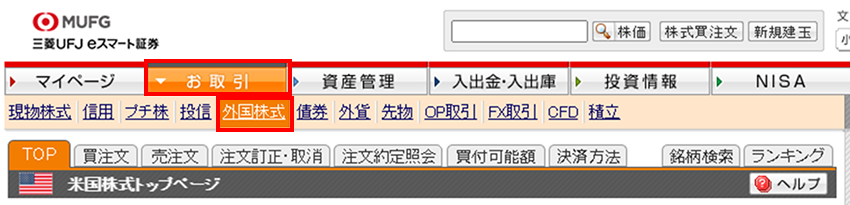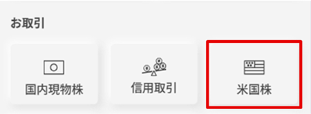 マイページにログインし、「お取引」>「外国株式」から米国株式トップページにアクセスできます。