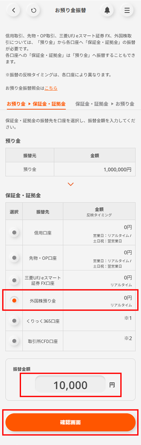 STEP3 外国株預り金に資金を振替