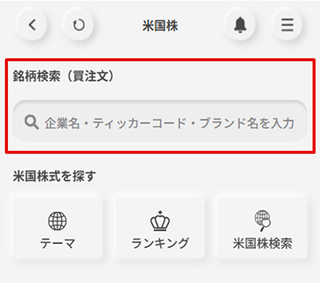 画面下部にある「キーワード検索」ボックスに、購入したい銘柄を入力します。