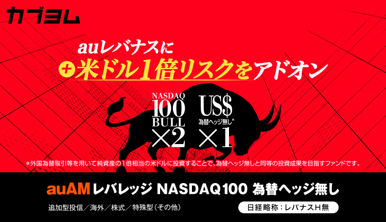 auレバナスに米ドル1倍リスクをアドオン! 「為替ヘッジ無し」同等の魅力あるパフォーマンスを目指します。