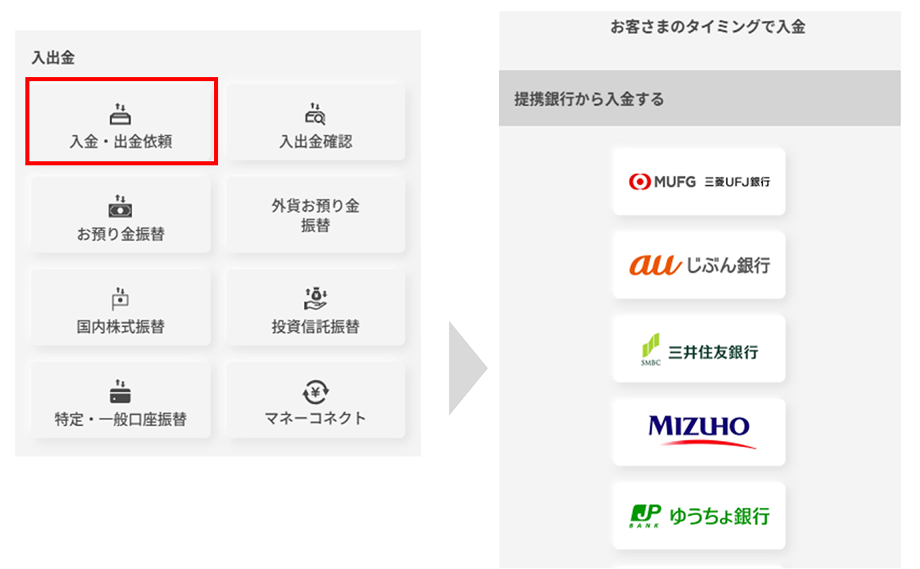 お客さまのご都合に合わせ多様な入金サービスをご用意しています。お客さまの入金ニーズに合わせてご利用ください。