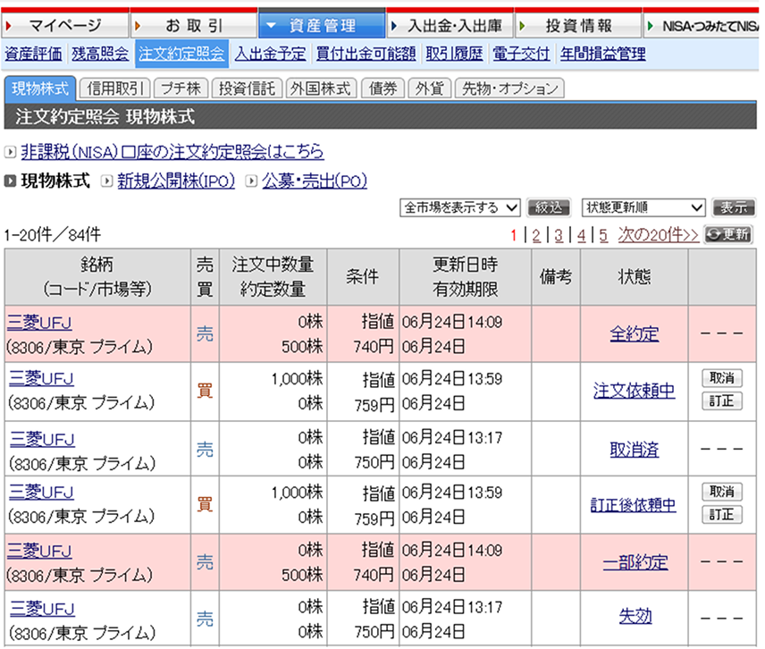 売り注文方法を見る 残高照会・買付出金可能額を見る- PC