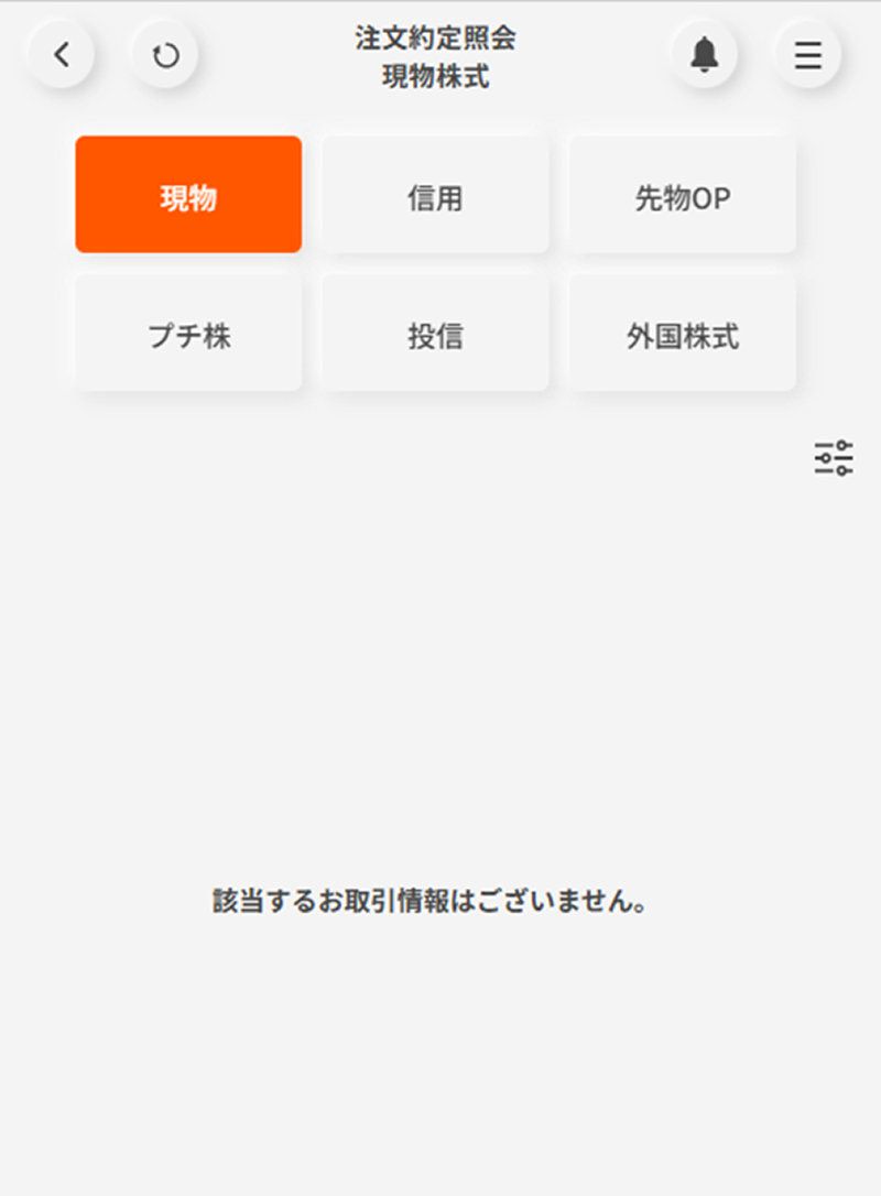 発注した注文は、「注文約定照会」の画面でご確認いただけます。「状態」列で注文状況(ステータス)を確認しましょう。