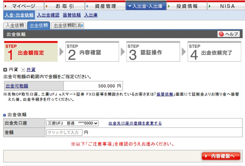 当社証券口座から、銀行口座へ出金する手順をご説明します。有価証券の売却代金を出金する場合は、受渡日から出金いただけます。