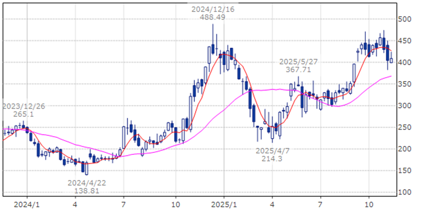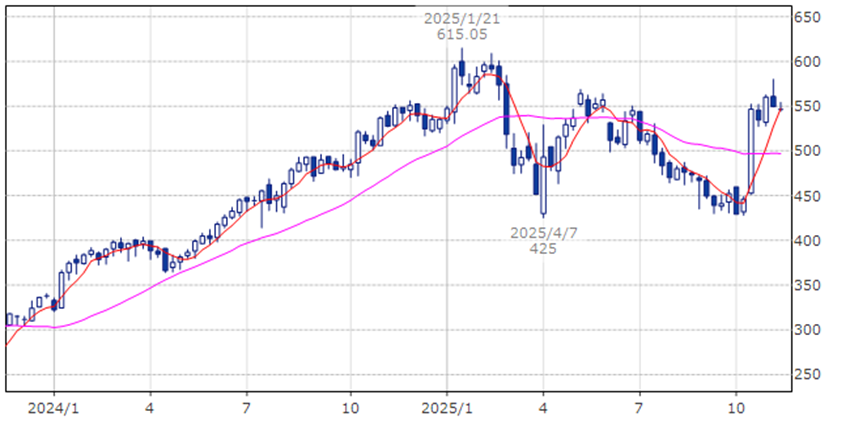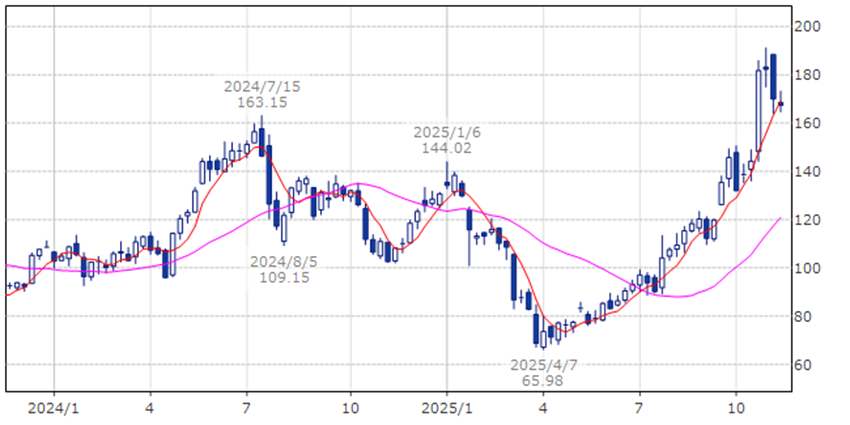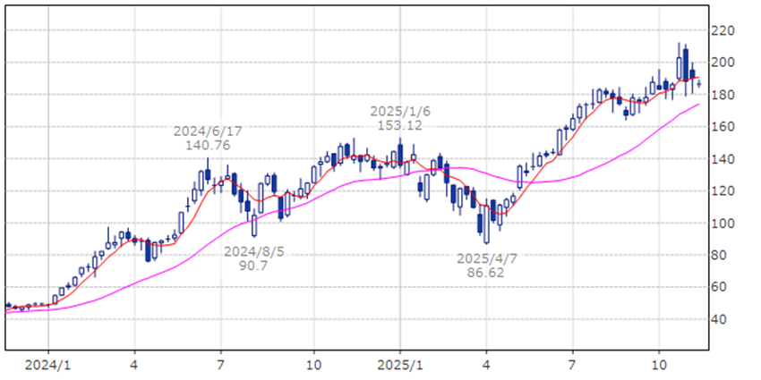 三菱UFJ eスマート証券のチャートツールEVERチャートで作成