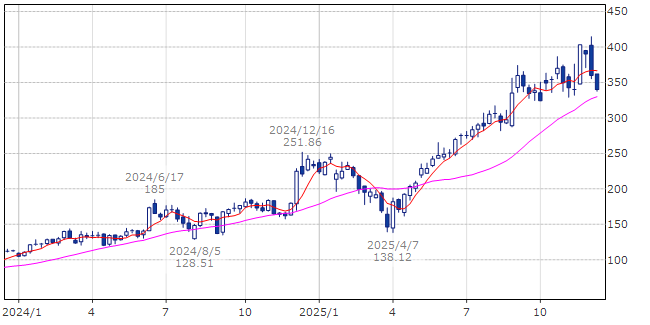 アルファベット(GOOGL) アルファベット GOOGL 傘下のグーグルが開発し、2025年11月に発表された最新の生成AI「ジェミニ3」の評価が高いことが要因です。