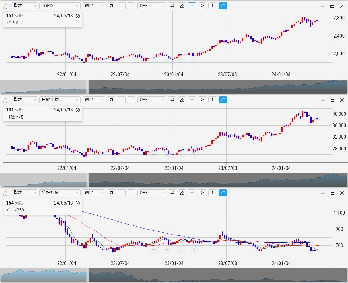 TOPIXが代表するバリュー株の下げは小さなものにとどまっていることがうかがえます。