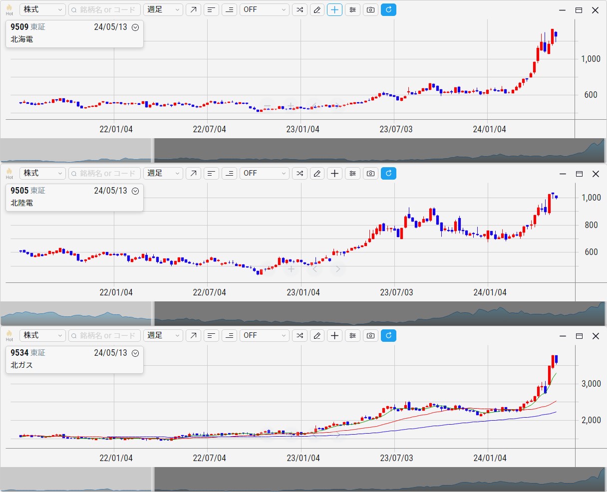 4月相場ではそれ以外の地方電力株が軒並み大きく上昇しています。