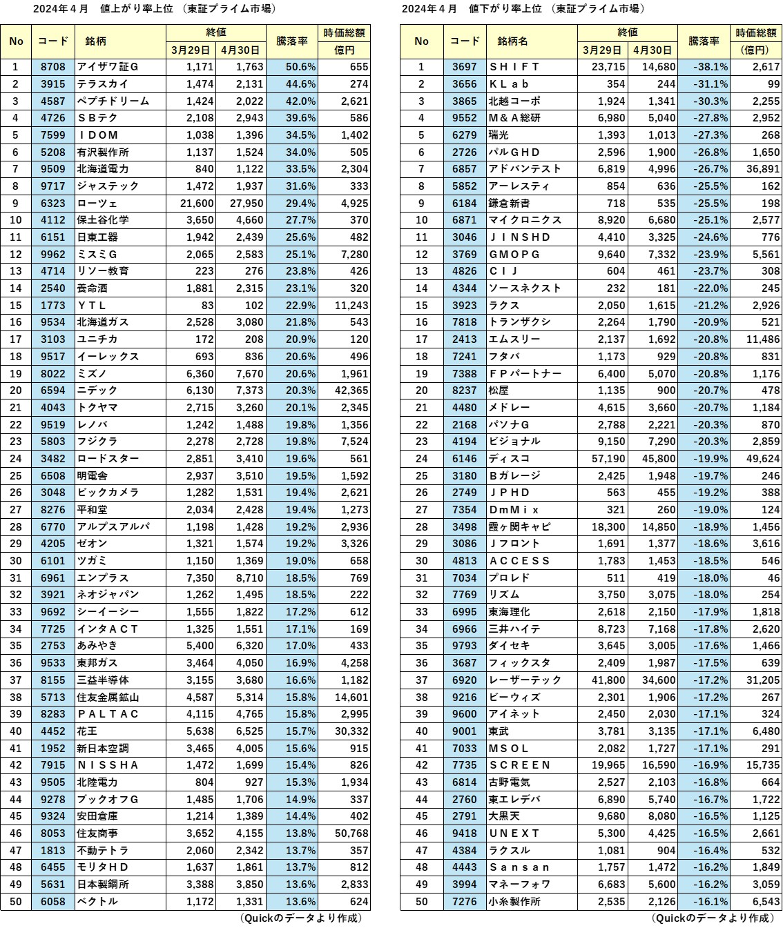 2024年4月の「HOTな銘柄、COOLな銘柄」をお送りいたします。