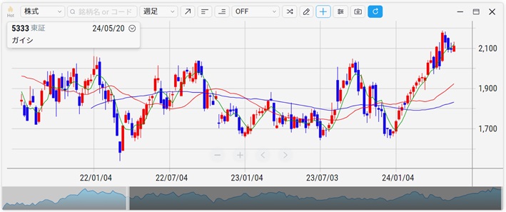 三菱UFJ eスマート証券のチャートツールEVERチャートで作成