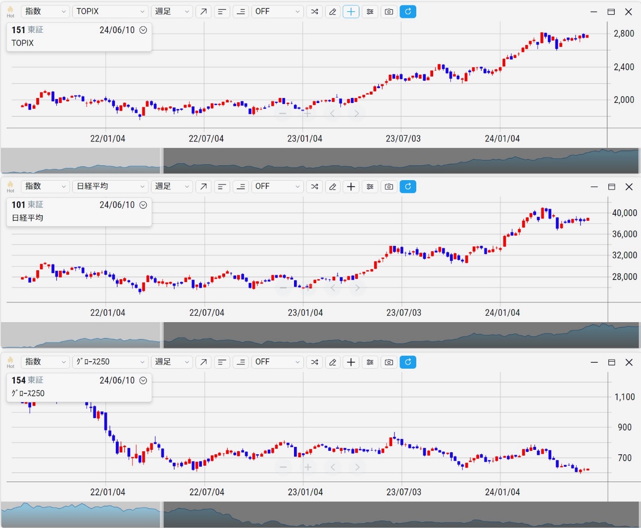 東証グロース市場250指数(旧・東証マザーズ指数)は▲4.48%と大きく続落しました。