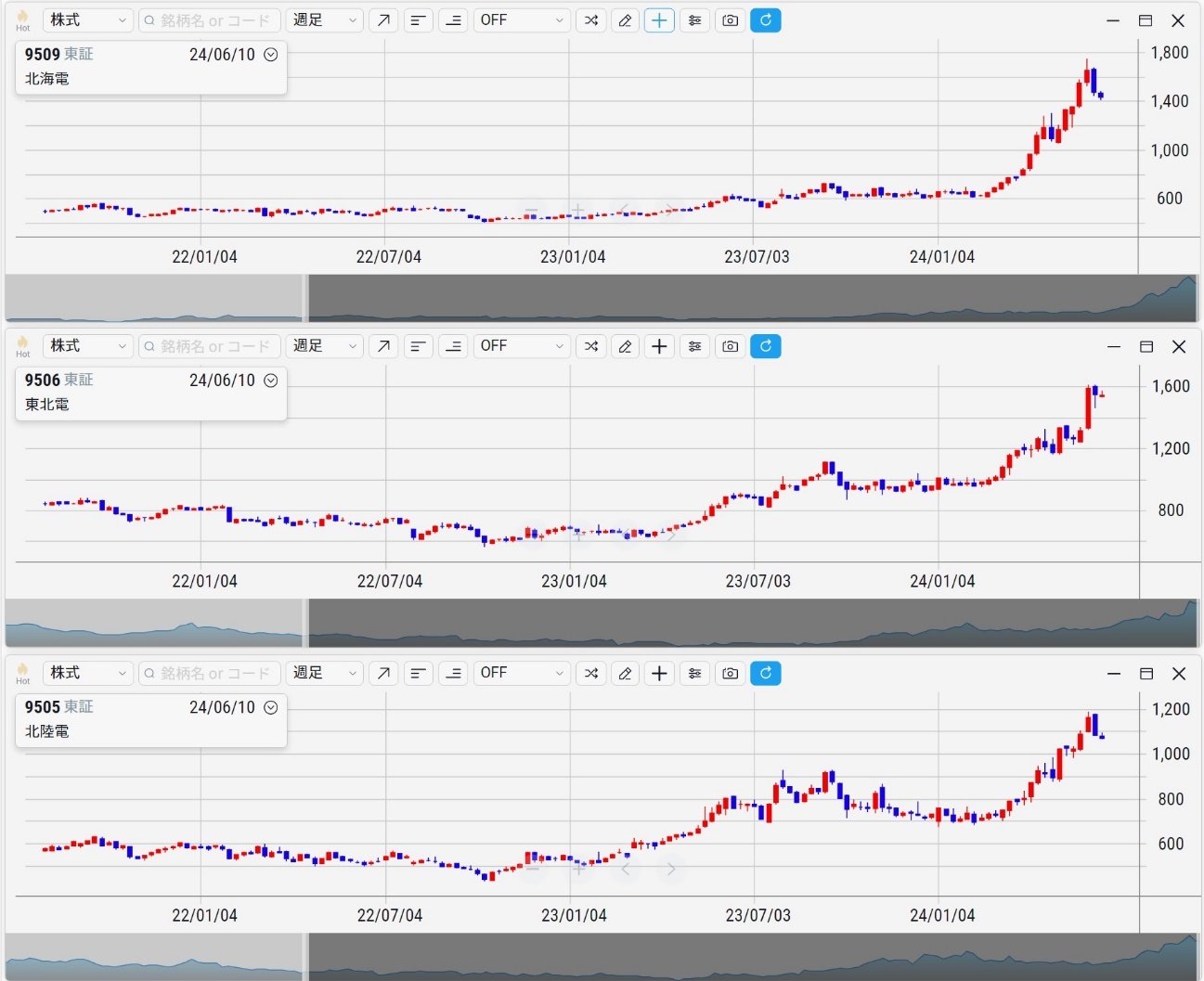 そこで比較的余力のある北陸電力(9505)や東北電力(9506)、九州電力(9508)が一貫して人気化しています。