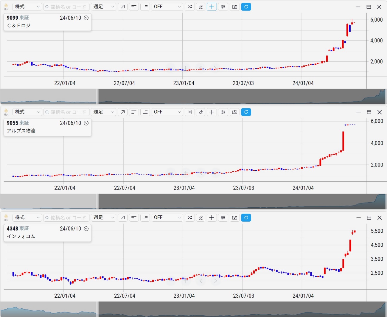 C&FロジはSGHDのTOBには賛意を示しており、株価は新たなTOB価格である5740円にさや寄せする形で大幅高となっています。