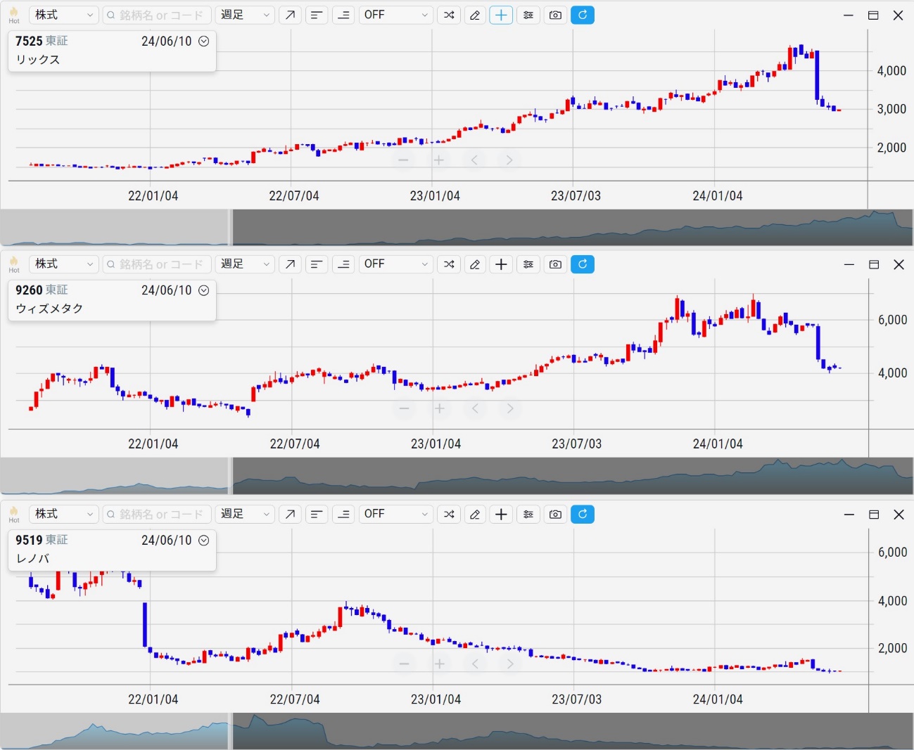リックス(7525、第1位、4,490円→3,055円、▲32.0%)