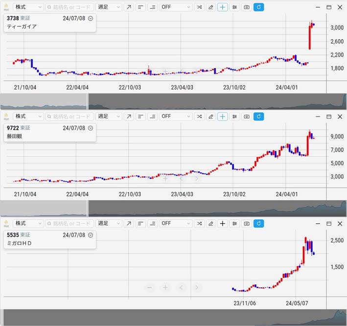 ミガロHD(55355535、第3位、1,638円→2,459円、+50.2%、361億円)は投資用マンションの開発を行っています。