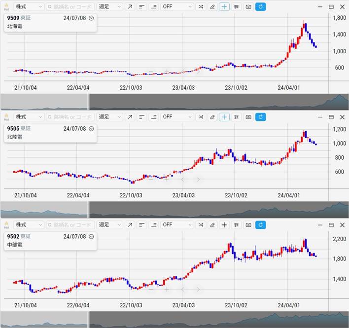 北陸電力(95059505、第20位、1,162円→1,019円、▲12.3%、2,126億円)