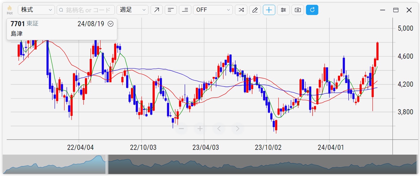 三菱UFJ eスマート証券のチャートツールEVERチャートで作成