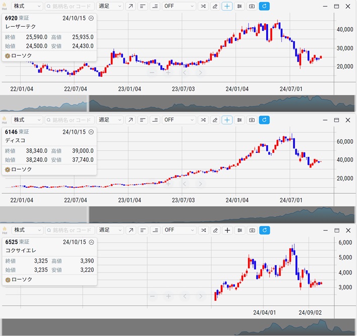 来年以降の各社のAI投資が伸び悩む可能性も指摘されており、それらが重なって東京市場でも東京エレクトロン(80358035)、ディスコ(61466146)、レーザーテック(69206920)などの半導体関連株が軟調な動きを余儀なくされました。