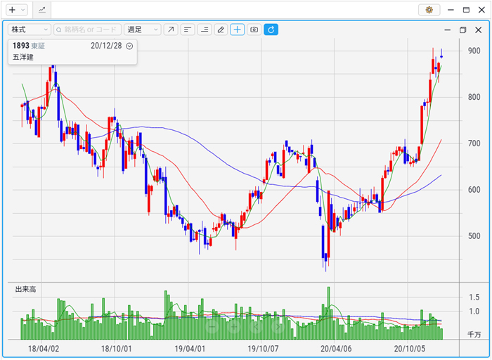 指数組入れ上位5銘柄を見てまいりましたが、連続増配継続中の銘柄は五洋建設 (1893)だけでした。